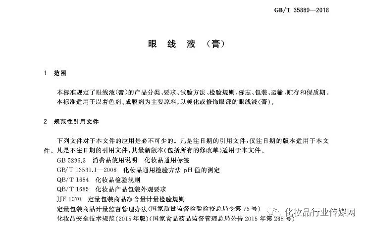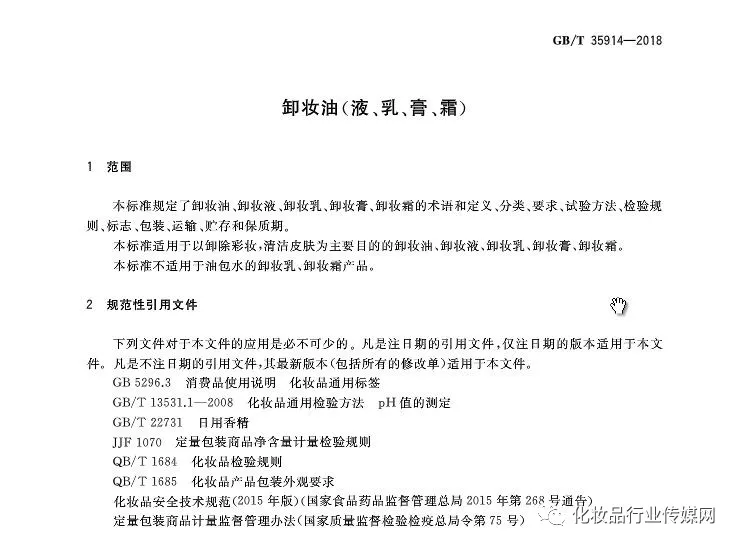 最新标准GB/T 35914-2018《卸妆油(液、乳、膏、霜)》、GB/T 35889-2018《眼线液(膏)》